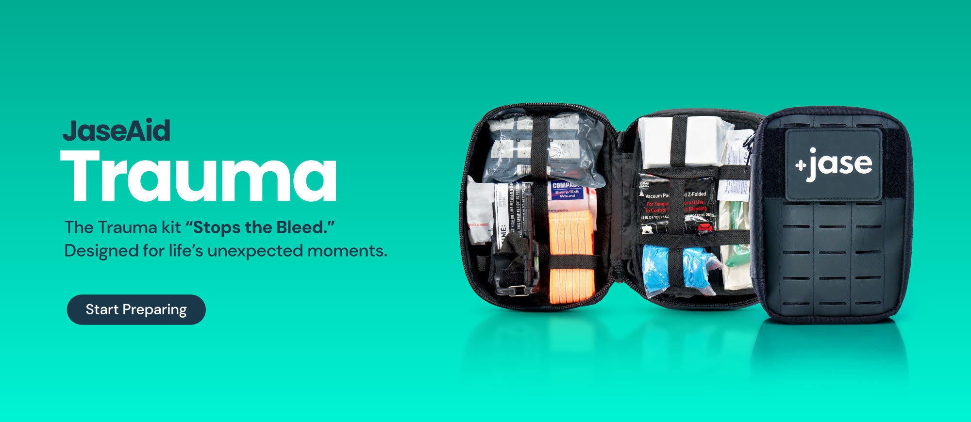 From rugged trauma kits for extreme situations to everyday first aid essentials, Jase Aid is your go-to for treating injuries when you’re your own first responder. With three levels of injury preparedness, there’s a JaseAid kit for everyone.