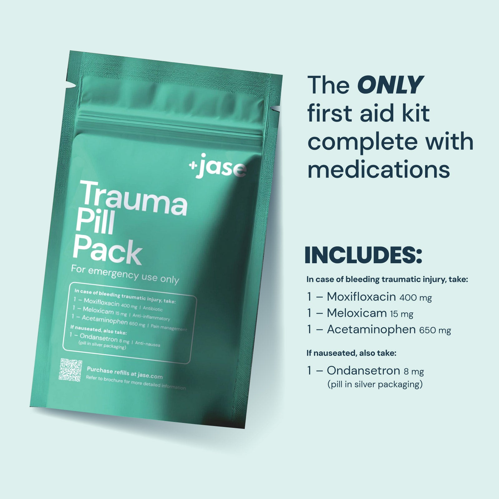Yes. It comes with our Trauma Pill Pack, inspired by the military’s Combat Pill Pack. It contains adult-dose medications for pain, inflammation, and infection to be taken immediately after a serious injury, assuming you are awake and able to swallow. These are real prescription medications, not over-the-counter placeholders.